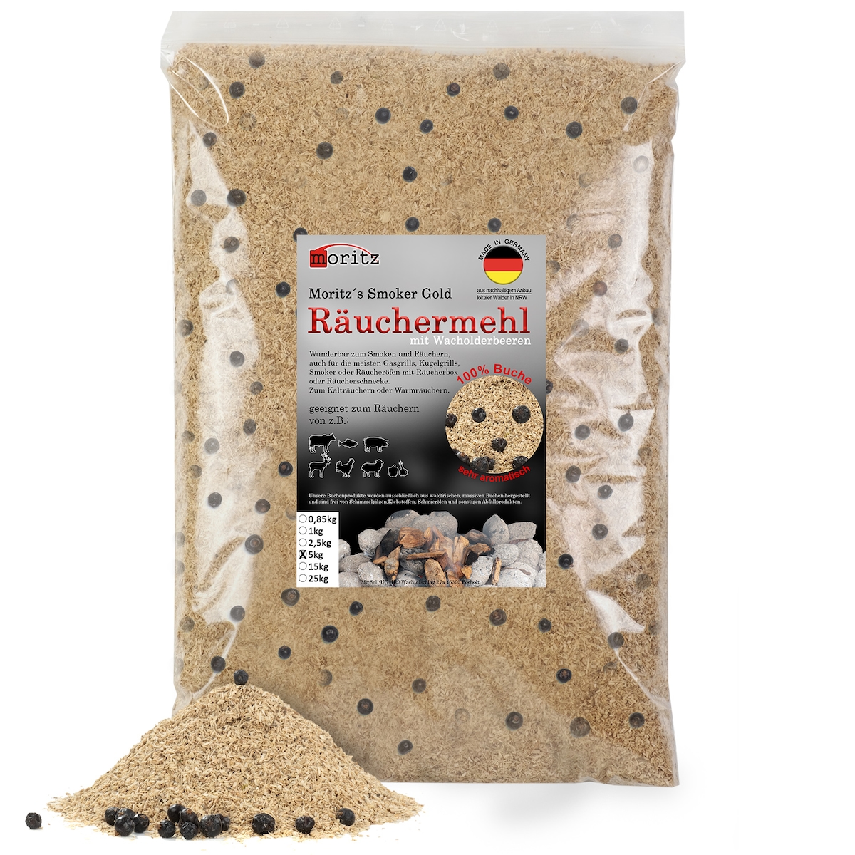 Moritz 2,5kg Räuchermehl Buche mit Nelke fein 0,5 -1 mm Räuchern I Kalträuchern von Fisch Fleisch Wurst Käse auch für BBQ I Grill - Räucherspäne