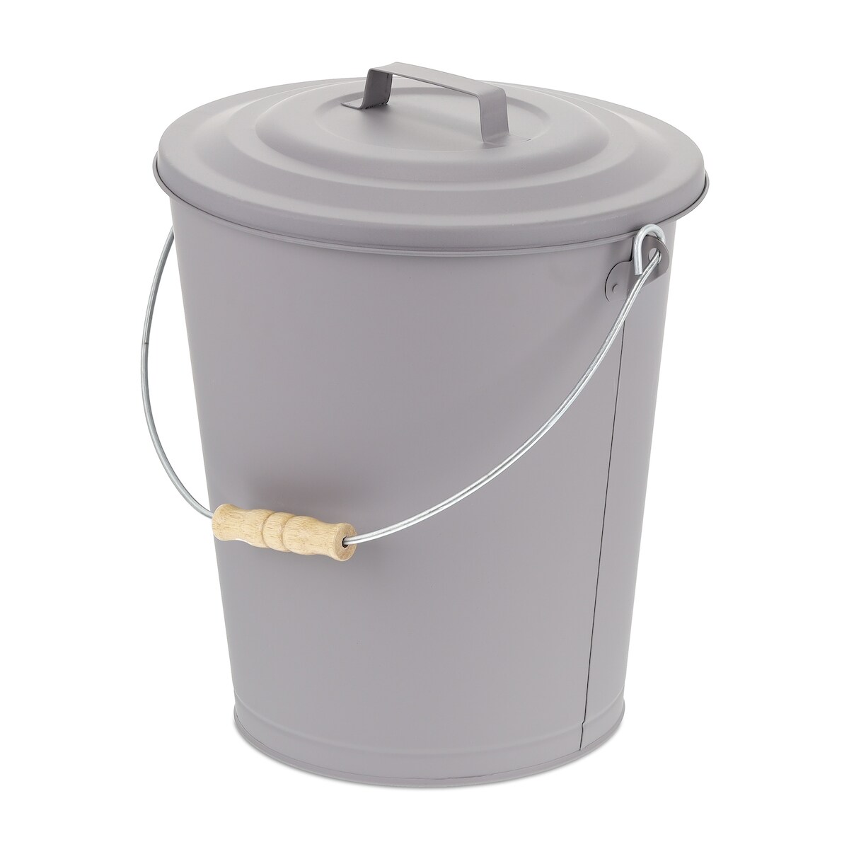 Relaxdays Ascheeimer mit Deckel, 24 Liter, für Kohle & Asche, runder Aschebehälter mit Henkel, Kamin, Ofen & Grill, grau
