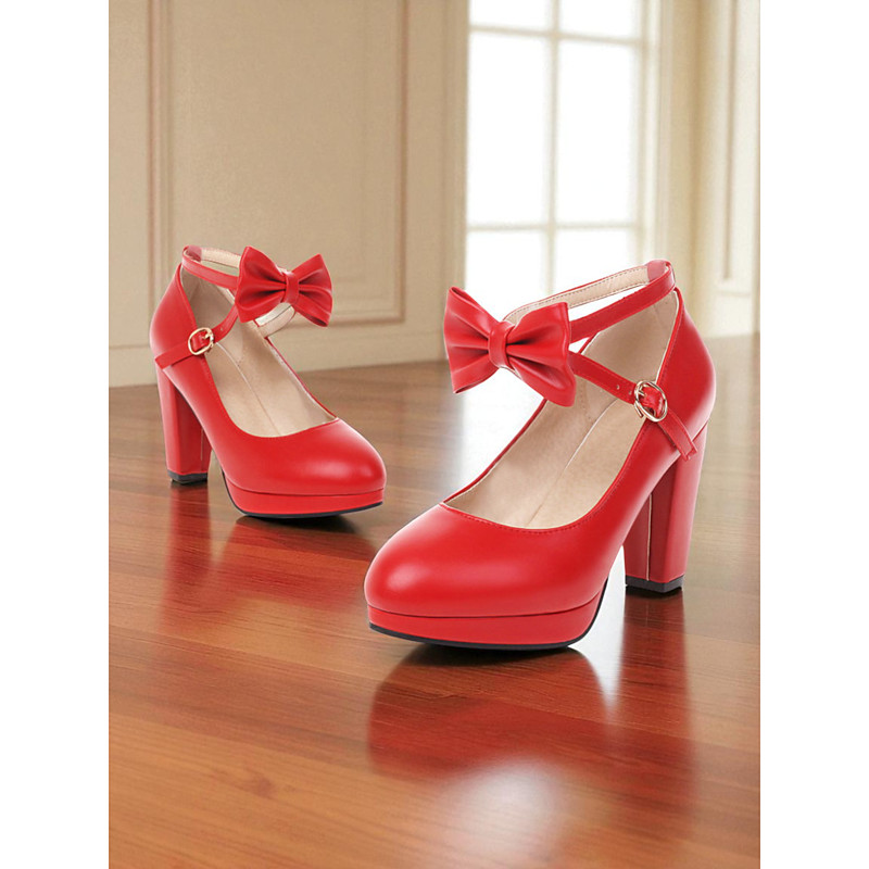 Women's 1950s Vintage Mary Jane Heels with Patent Bow Straps – Retro Block Heel Pumps for Valentine's Day Dates, Parties Romantic Outfits