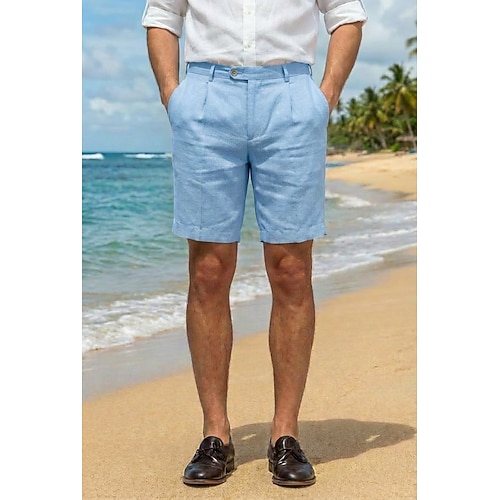 Herren Baumwolle Leinen Freizeithose Sommershorts Täglich Strand Urlaub Stilvoll Leicht Himmelblau Salbei Beige Sommer Hosen Einfarbig Figurbetonter Schnitt Kurz Unelastisch