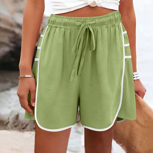 Damen Shorts aus Baumwollleinen Shorts Sommershorts Strandshorts Urlaub Mode Alltagstauglich Kurz Hohe Taille Einfarbig Einfach Kordelzug Patchwork Elastischer Bund Komfort Weich Atmungsaktiv