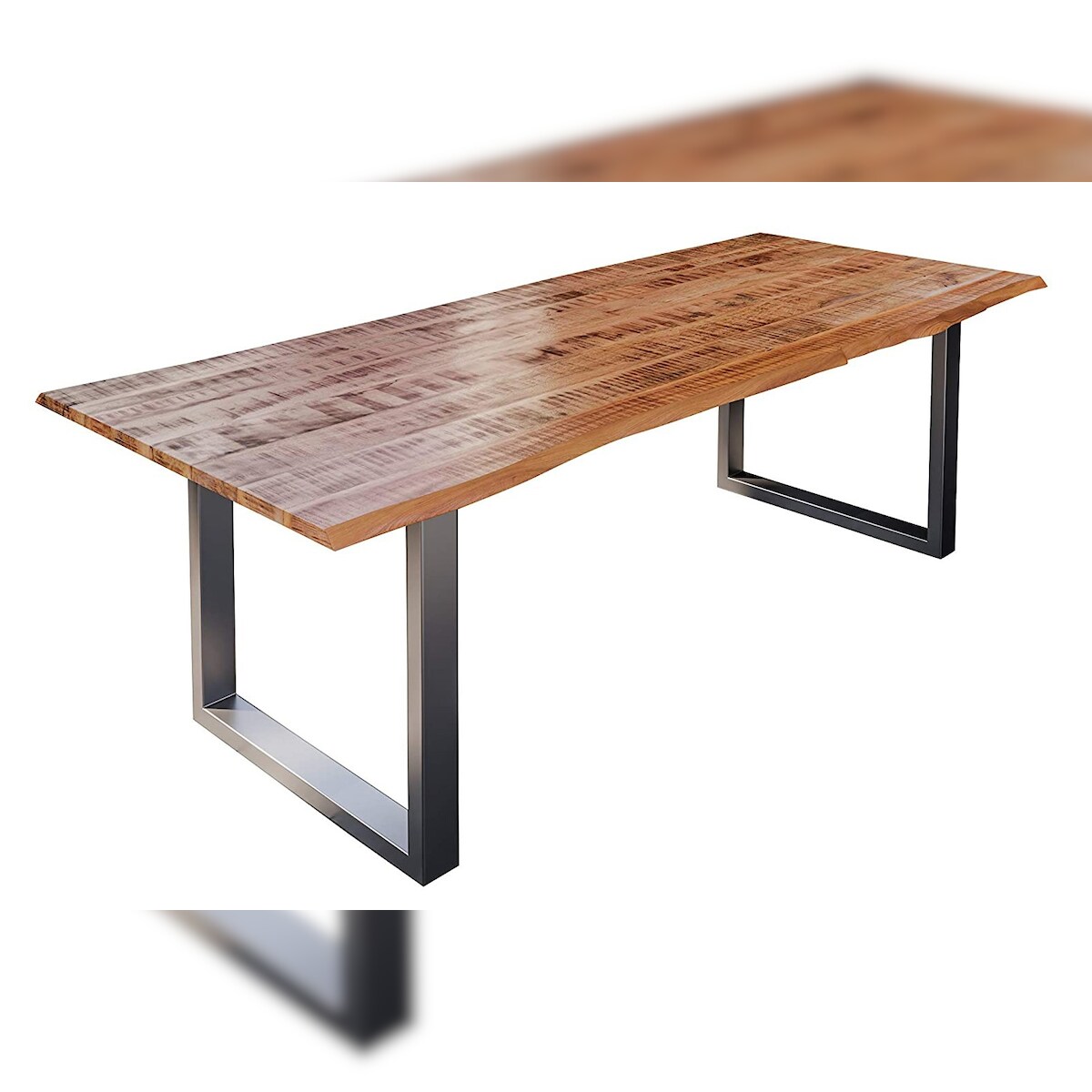 Esstisch Baumkante Massiv Mango naturfarben 240 x 100 silber U-Gestell DORA