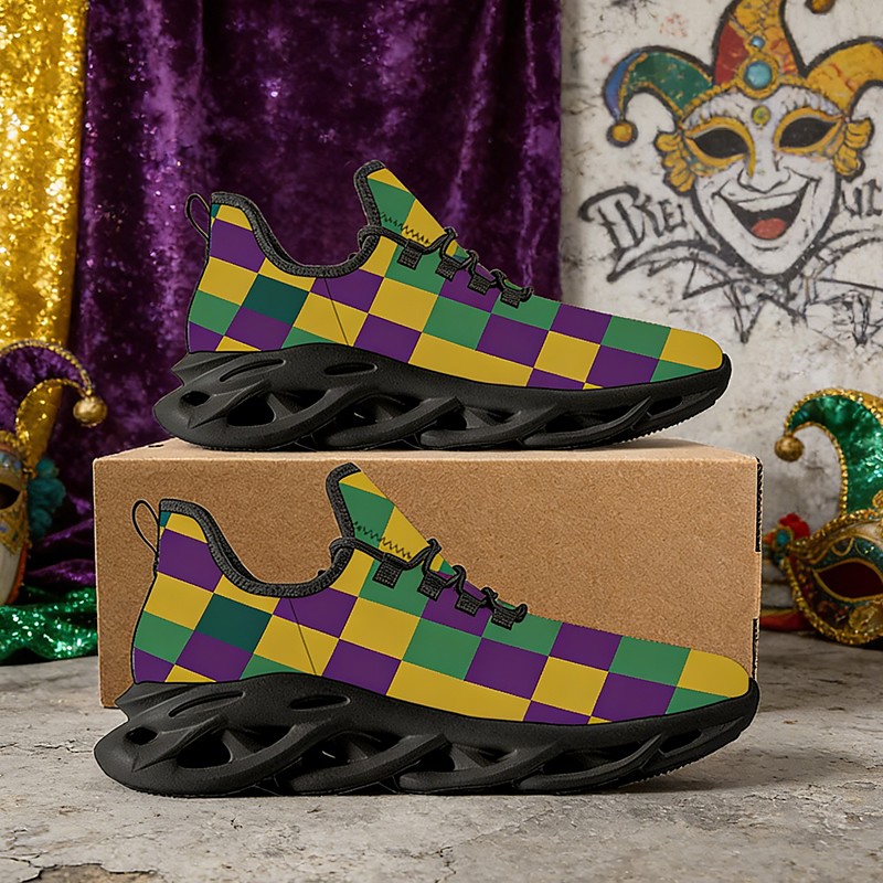 Men's Mardi Gras Confetti Print Lace-Up Sneakers - Cushioned Comfort Festive Shoes for Carnival Parades, Street Celebrations, Themed Parties Casual Holiday Outings