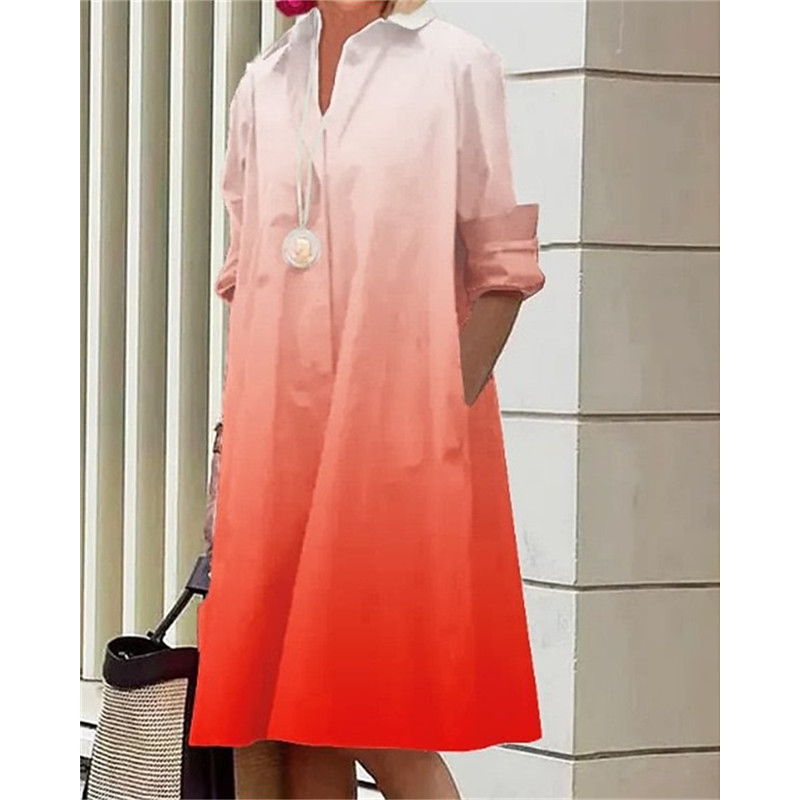 Women's Midi Dress Shirt Dress Casual Dress Fashion Modern Daily Beach Weekend Regular Fit Color Gradient Long Sleeve Shirt Collar Blue Black Yellow Red Spring Fall