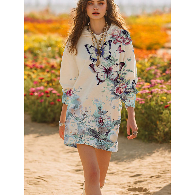 Women's Hoodie Dress Midi Dress Shift Dress Casual Outdoor Home Going out Regular Fit Floral Graphic Long Sleeve Hooded Red Blue Spring Fall Winter