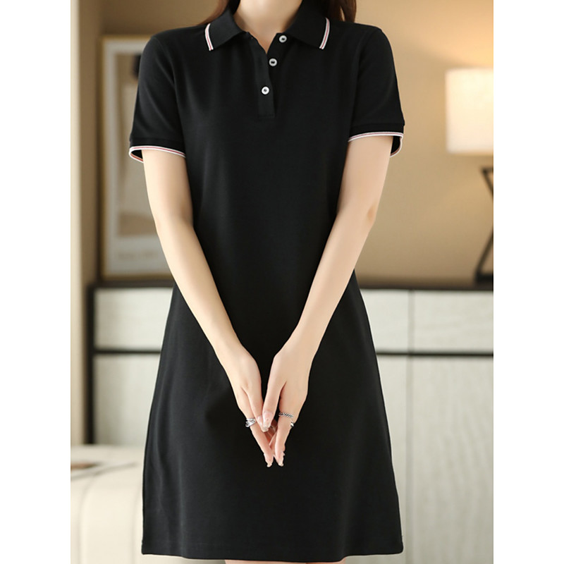 Women's Mini Dress Shift Dress Casual Daily Regular Fit Plain Short Sleeve Lapel Black White Pink Navy Blue Summer Spring