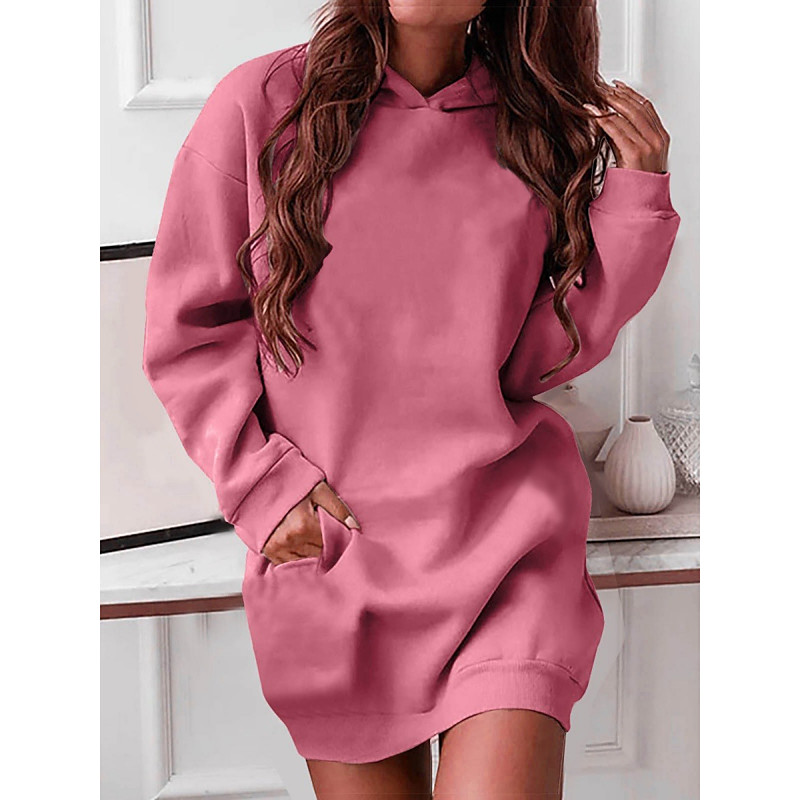 Women's Mini Dress Hoodie Dress Casual Dress Fashion Modern Daily Office Vacation Loose Fit Plain Long Sleeve Hooded Pink Navy Blue Brown Green Spring Fall Winter