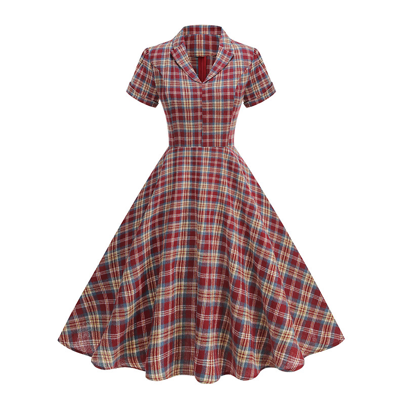 Retro Vintage 1950s Rockabilly Midi Dress A Line Dress Flare Dress Short Sleeves Plaid Fit Flare Fancy Dress Women's Carnival Valentine's Day Casual Homecoming Retro Theme Party Adults' Dress Spring