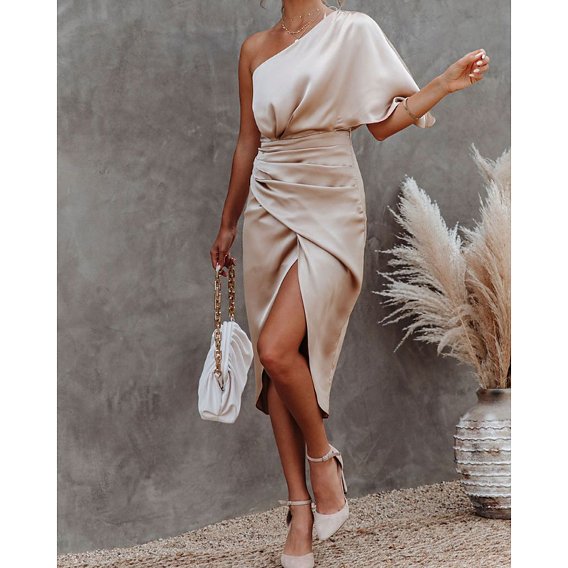 Women's Mini Dress Satin Dress Prom Dress Party Dress Cocktail Dress Elegant Modern Evening Party Party Cocktail Party Slim Plain Half Sleeve One Shoulder Black Navy Blue Orange Gold Summer Spring