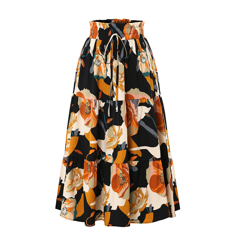 Women's Skirt Casual Midi High Waist Skirts Floral Print Stretchy Daily Street Wine Navy Black Army Green Spring Spandex Polyester