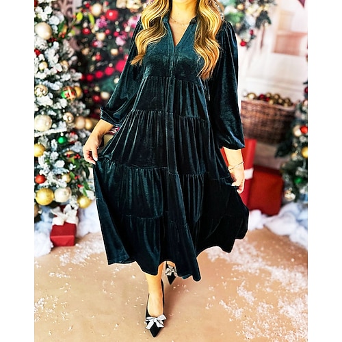 Per donna Abito Midi Abito in Velluto Abito da Cocktail Elegante Moda Moderno Quotidiano All'aperto Festa serale Vestibilità regolare Semplice Manica Lunga Scollo a V Blu Nero Rosso Verde scuro