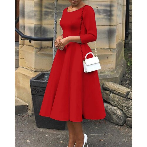 Per donna Abito Midi Vestito da Festa Abito da Cocktail Vestito a ruota Moderno All'aperto Feste Compleanno Vestibilità regolare Semplice Manica Lunga Girocollo Nero Bianco Rosso Verde Estate