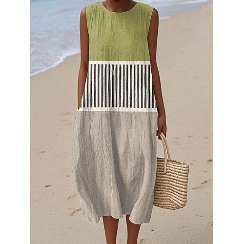 Per donna Rosso Blu marino Verde Estate Primavera Abito Midi Abiti ispirati al lino Vestito Casual Abito in cotone e lino Vacanza Essenziale Moderno Quotidiano Weekend Vestibilità comoda Semplice