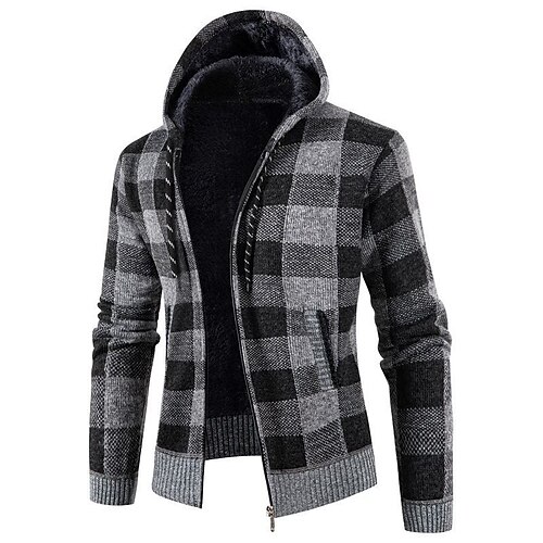 Per uomo Cardigan Maglione Corto Maglione con Zip Maglione a maglia A Coste Maglia Top Regolari Lavorato a maglia Plaid Con Cappuccio Moda Classico Vacanza Abbigliamento quotidiano Abbigliamento