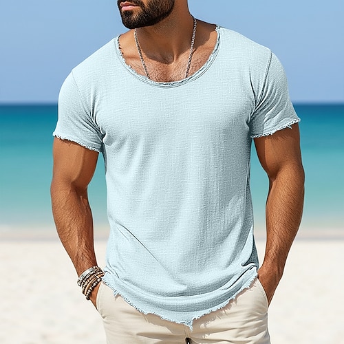 Herren T-Shirt Leinen-T-Shirt Kurze Ärmel Rundhalsausschnitt Sommer Einfach Mode Designer Basic Jahrgang Weich Rein Lässig Urlaub Straße Hellblau Schwarz Weiß Top T-Shirt für Herren