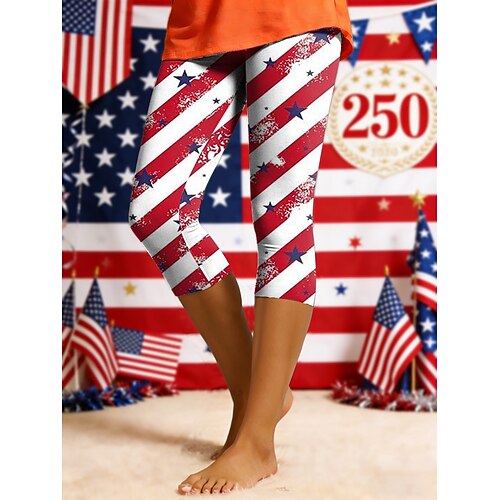 leggings da donna per il giorno dell'indipendenza americana, moda per le vacanze, pantaloni capri casual a vita alta, comodi, elastici, per tutti i giorni, per le vacanze, per strada, blu, bianco,