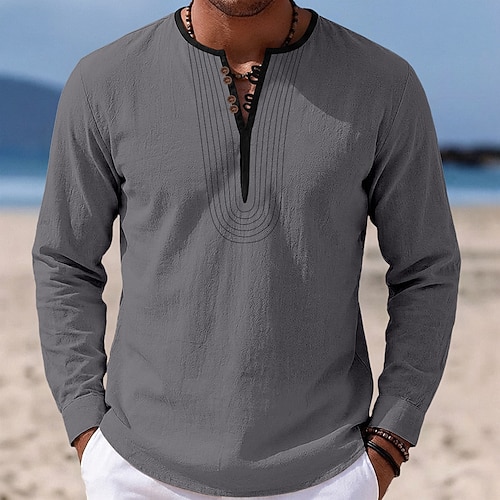 Per uomo Camicia Camicia di lino Camicia Estiva Camicia da Spiaggia Tinta unica Casuale Vacanza Nero Bianco Verde Cachi Manica Lunga Girocollo Estate Abbigliamento Ricamato