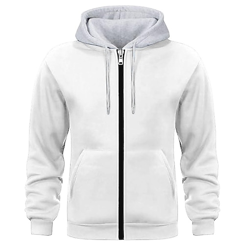 Per uomo Felpa con cappuccio Felpa con cappuccio a zip intera Rosso bordeaux Nero Bianco Blu marino Cammello Con Cappuccio Semplice Patchwork Blocco di colore Sport Outdoor Casuale Quotidiano