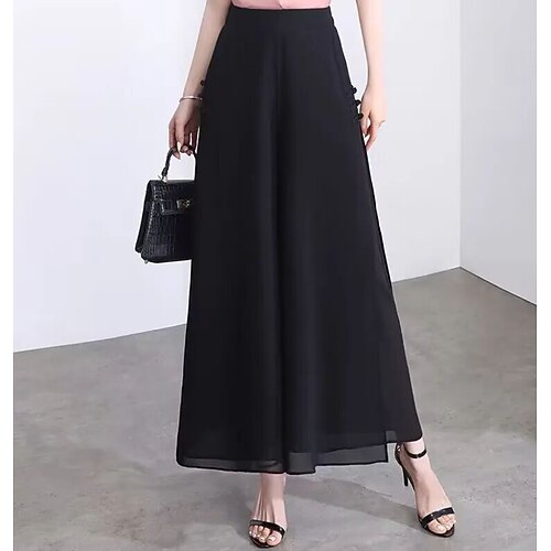 Per donna Gamba larga Chinos Elegante Moda Streetwear Lunghezza al polpaccio Vita Alta Semplice Comodo Comodità Morbido Micro-elastico All'aperto Vacanza Streetwear Verde mela Vinaccia blu navy Nero