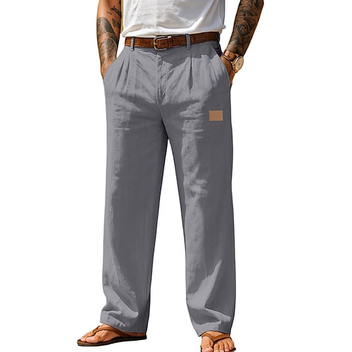 Per uomo Pantaloni di Lino Pantaloni Pantaloni Estivi Pantaloni Larghi Tasca Elastico in vita Semplice Comodità Traspirante Lunghezza intera Quotidiano All'aperto Affari Moda Stile Classico Blu Nero