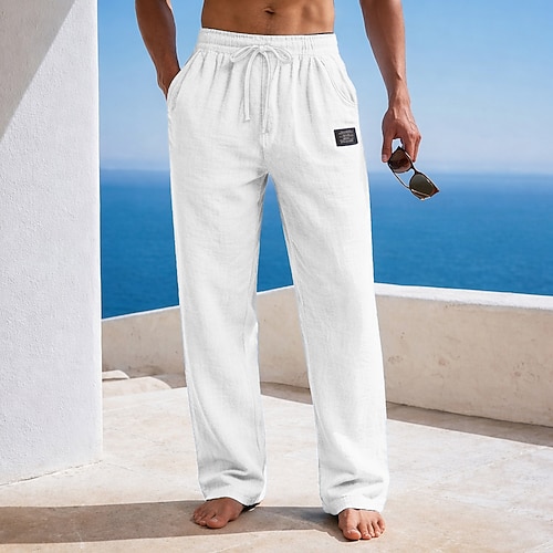 Per uomo Pantaloni Estivi Pantaloni Larghi Pantaloni da Spiaggia Coulisse Elastico in vita Gamba Dritta Semplice Comodità Traspirante Lunghezza intera Casuale Quotidiano Spiaggia Vacanza Moda Blu Nero