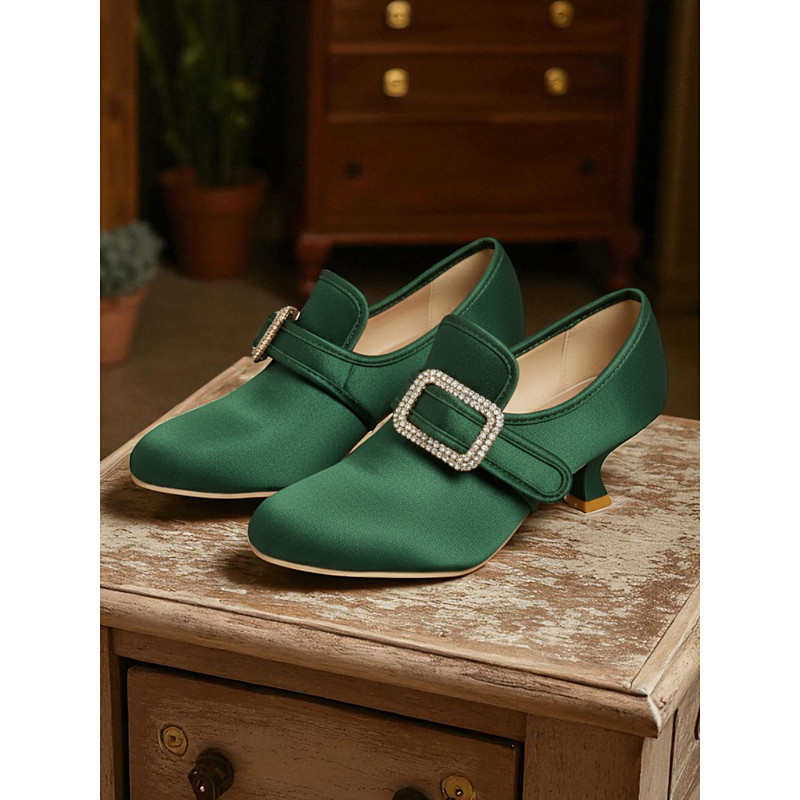 Women's 1920s Vintage Victorian Buckle Heels - Edwardian Satin Kitten Heel Dress Shoes for Lolita, Rococo and Gatsby Party or Cosplay Outfits