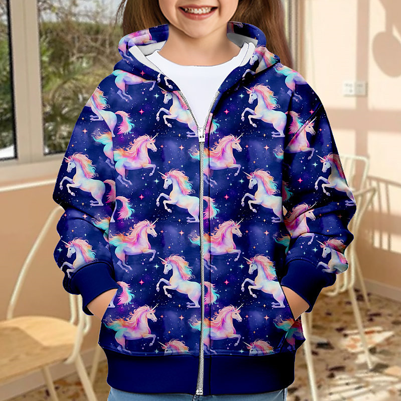 Girls' 3D Unicorn Hoodie Coat Outerwear Long Sleeve 3D Print Fall Winter Active Fashion Cute Kids 3-12 Years Outdoor Casual Daily Regular Fit