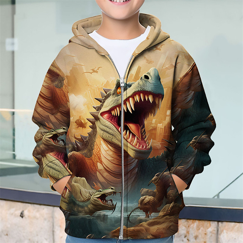 Boys 3D Dinosaur Hoodie Coat Outerwear Long Sleeve Spring Fall Adorable Sport Kids 4-12 Years Zip Street Daily Regular Fit