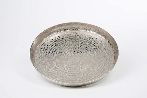 Tablett rund, guillochiert, Mittel Höhe 4,0 cm Ø 46,0 cm Aluminium vernickelt