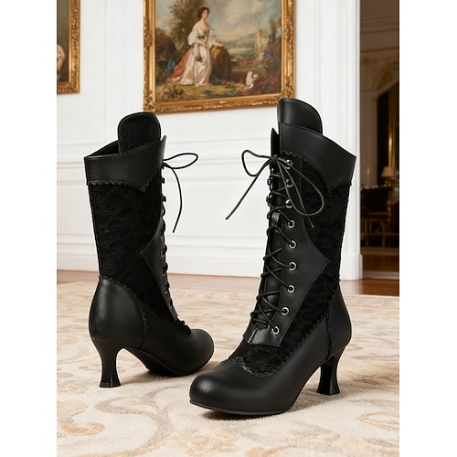 stivali da donna in similpelle rossa con lacci e tacchi, in stile vittoriano - stile gotico vintage anni '20 per carnevale, feste e occasioni in costume