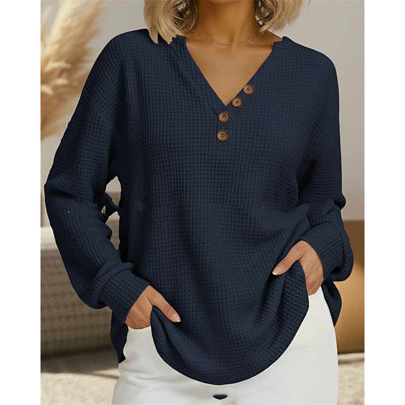 Women's Blouse Dressy Tops Plain Elegant Vintage Ladies Long Sleeve V Neck Regular Tops Work Daily Holiday Ruched Buttons Black White Red Royal Blue Fall Winter