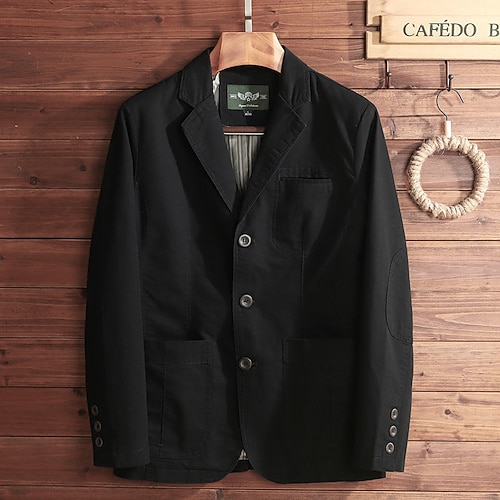 Da uomo Giacca Leggera Casuale Casual Primavera Autunno Inverno Cotone Tinta unica Monopetto Un Bottone Giacca Nero Kaki Verde militare