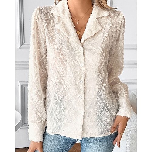 Per donna Camicia Tinta unica Elegante Manica Lunga Colletto a Camicia Top Regolari Lavoro Quotidiano Uscire Bottoni Albicocca Primavera Autunno