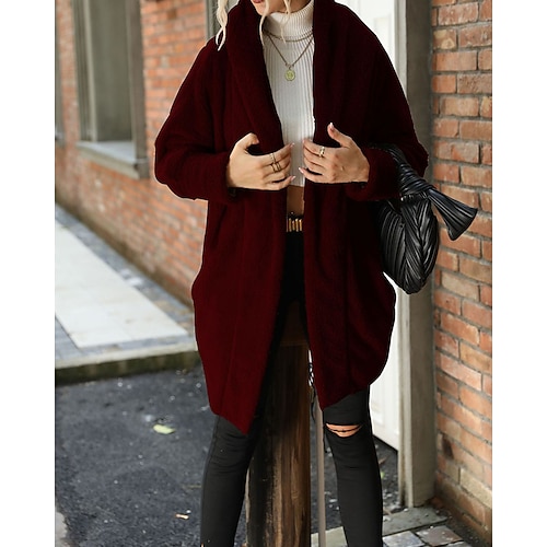 Per donna Cappotto Invernale Cappotto Teddy Caldo Confortevole Tasca Aperturaanteriore Casual Tinta unica Vacanza Streetwear Casuale Abbigliamento quotidiano Lungo Collo ripiegato Vestibilit