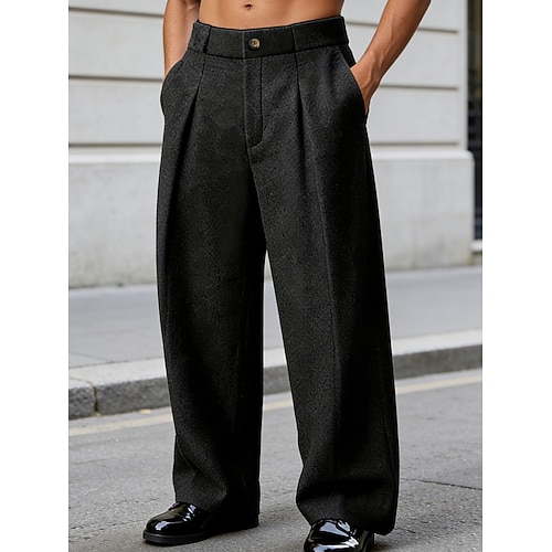 Per uomo Pantaloni Pantaloni Eleganti Chinos Tasca Pieghe Tinta unica Comodità Indossabile Quotidiano All'aperto Ufficio Streetwear Elegante Nero Grigio