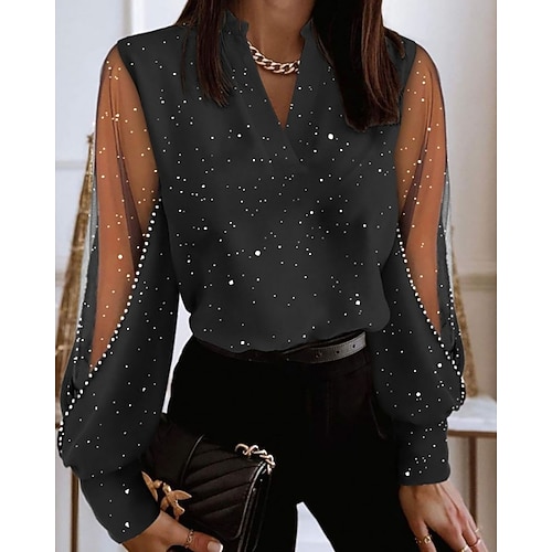 Per donna Camicia Blusa Tinta unica Elegante Manica Lunga Scollo a V Top Regolari Quotidiano Ferie Uscire Pizzo Patchwork Nero Autunno Inverno
