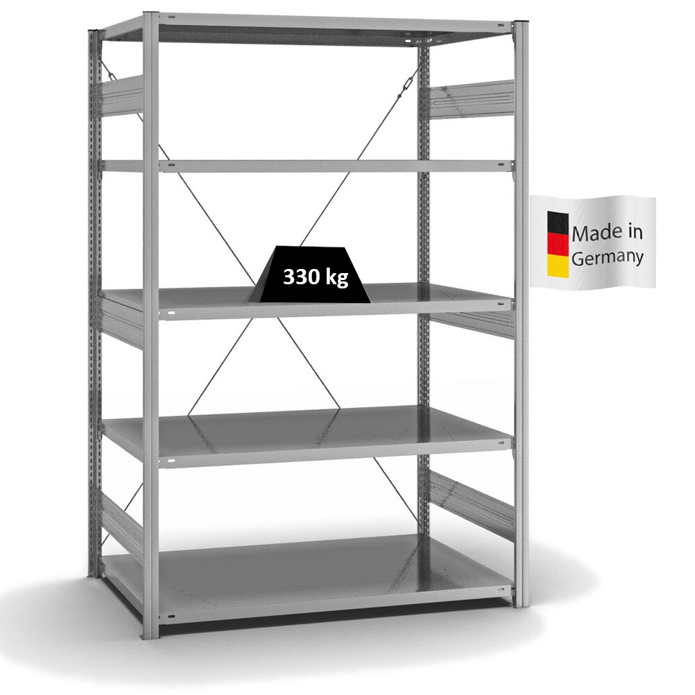 PROREGAL Fachbodenregal Stecksystem | Grundregal | HxBxT 200x130x80cm | 5 Ebenen | Fachlast 330 kg | Einseitig nutzbar | Verzinkt