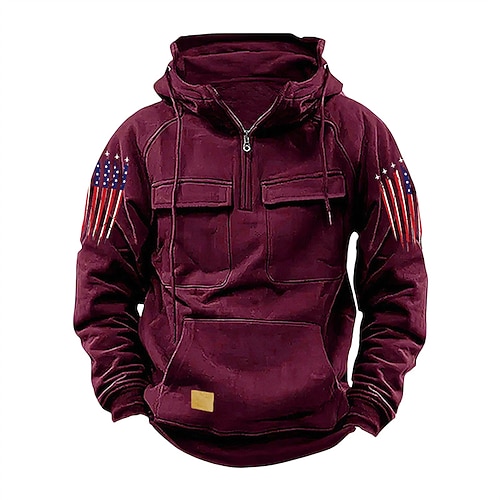 Per uomo Felpa con cappuccio Felpa con cappuccio e zip corta Blu Nero Rosa Vino Verde Con Cappuccio Bandiera Nazionale Coulisse Tasca Quotidiano Sport Outdoor Ferie Cotone Poliestere Streetwear