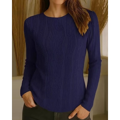 Per donna Blusa con texture Maglietta Semplice Moda Moderno Manica Lunga Girocollo Top Regolari Quotidiano Uscire Asimmetrico Nero Vino Fucsia Marrone Verde Primavera Autunno