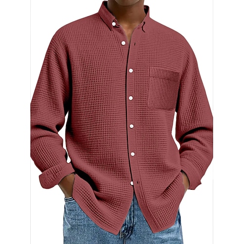 Per uomo Camicia Camicia a nido d'ape Camicia casual Camicia con Bottoni Blu Nero Bianco Vino Blu marino Manica Lunga Tinta unica Bavero Casuale Quotidiano Con tasca esterna Abbigliamento Maglieria