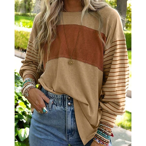 Per donna Maglietta Blusa Blocco di colori A righe Elegante Moda Manica Lunga Girocollo Top Regolari Quotidiano Uscire Weekend Patchwork Rosa Vino Verde Cachi Grigio Estate Primavera Autunno
