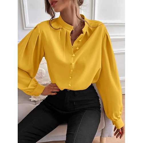 Per donna Camicia Tinta unica Elegante Essenziale Casual Manica Lunga Colletto a Camicia Top Regolari Quotidiano Volant Bottoni Nero Bianco Giallo Rosa Vino Estate Primavera Autunno