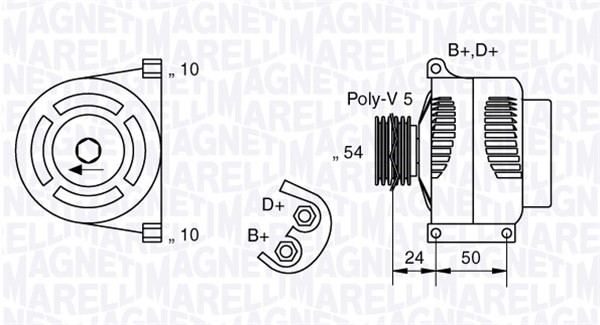 Laturi 12V 120A Magneti marelli 063377027010 - abarth, fiat, lancia - OE 51787196, 51859041