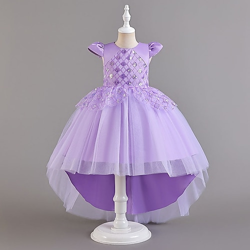 Abito da damigella d'onore bambina Ragazze Abito formale Abiti da sposa Feste Matrimonio Formale Adorabile Formale Principessa Abito per la Prima Comunione Paillettes Patchwork Tinta unica Senza