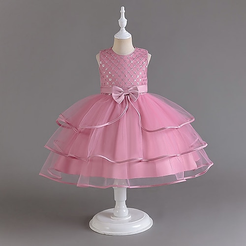 Abito da damigella d'onore bambina Ragazze Abito formale Abiti da sposa Vestito da Festa Feste Matrimonio Formale Principessa Dolce Patchwork Rete Tinta unica Senza Maniche Girocollo Rosa chiaro