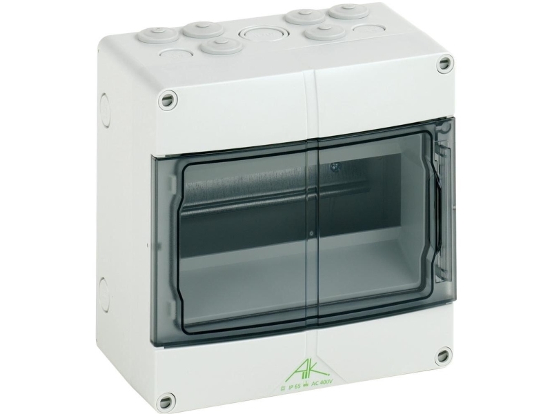 SPELSBERG Gruppentafel AK9 9 Module 1 ReiheBxHxT 200x200x122 mmgrau RAL7035, IP 65 mit Scharnierdeckel
