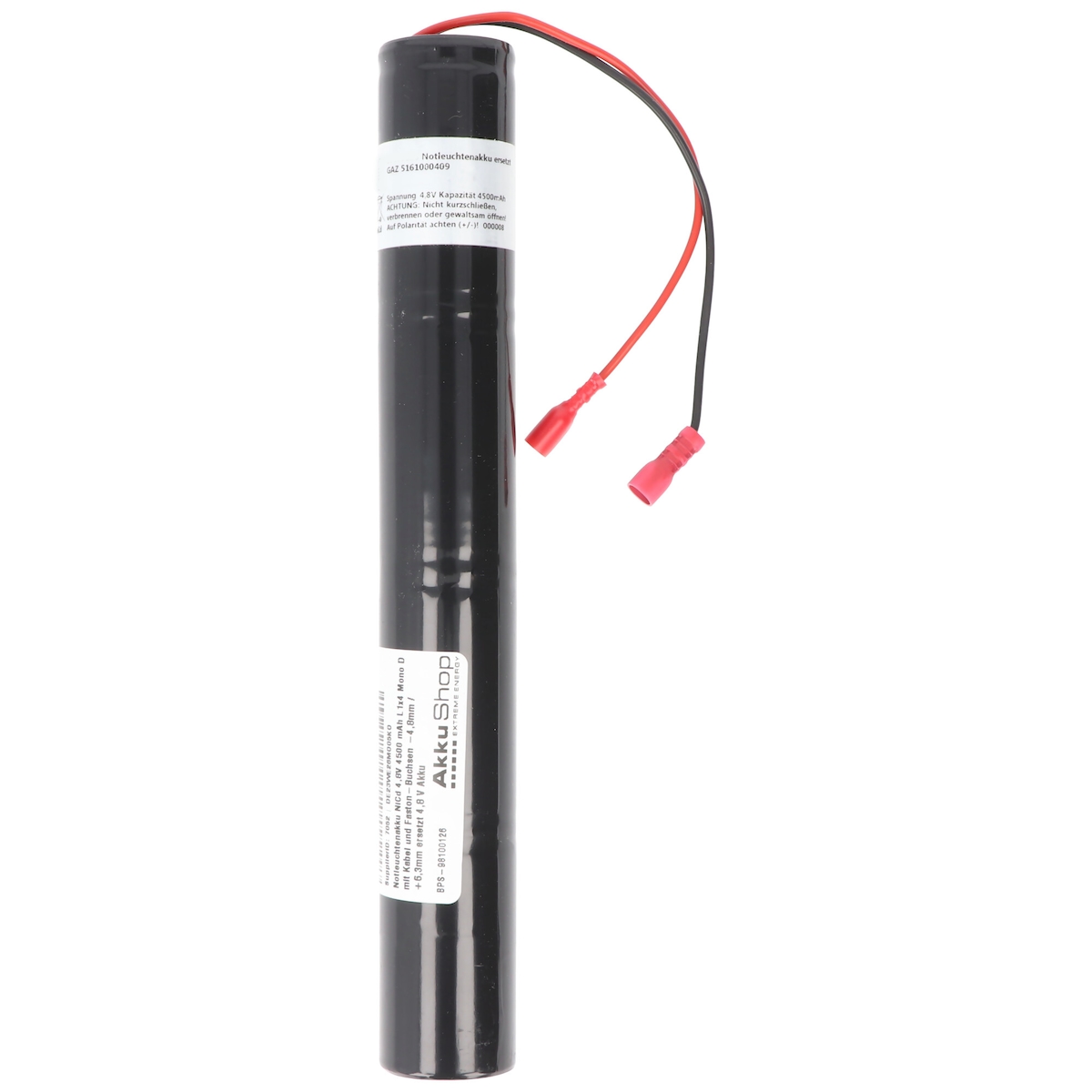 AccuCell Notleuchtenakku NiCd 4,8V 4500 mAh L1x4 Mono D mit Kabel und Faston-Buchsen -4,8mm / +6,3mm ersetzt 4,8 V Akku