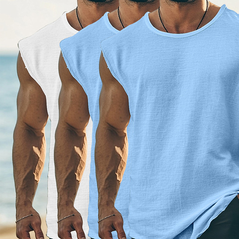 Men's T Shirt Sleeveless Short Sleeve Cap Sleeve Round Neck Summer Plain Fashion Classic Casual 3-Piece Multi-pack Basic Street Casual Sports A B C Top Tee for Men