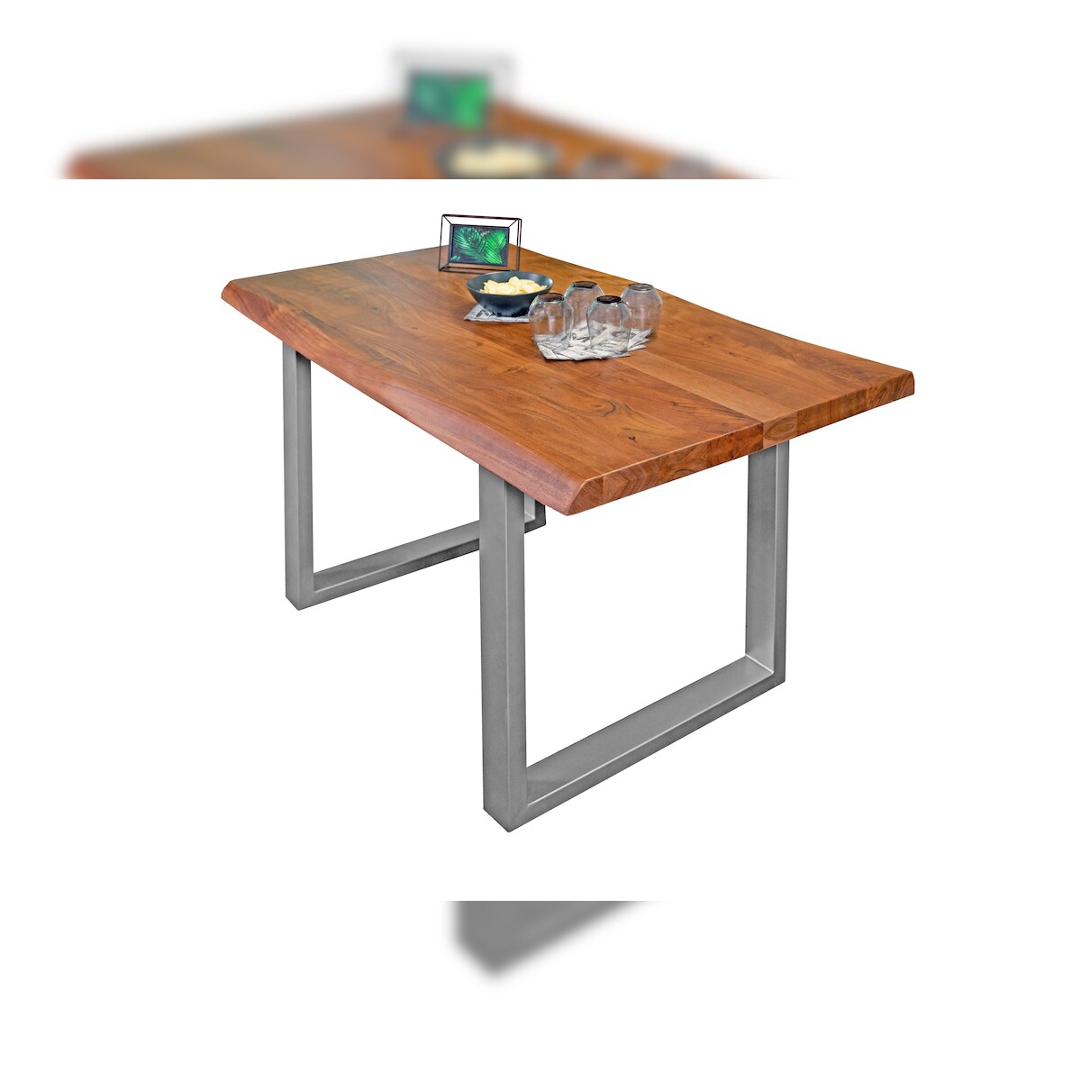 Esstisch Baumkante massiv Akazie Nussbaum 240 x 100 U-Gestell silber ATLAS