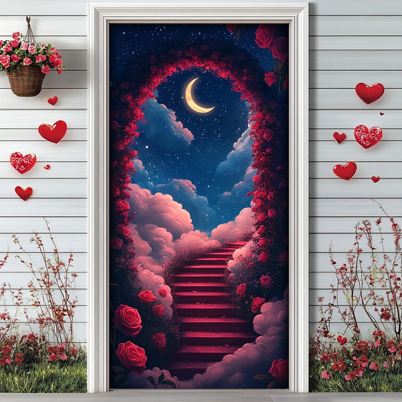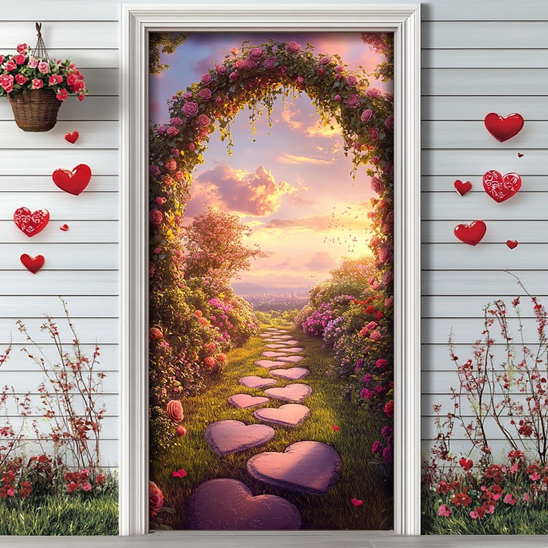 Wedding Outdoor Decorations Door Covers Door Tapestry Door Curtain Decoration Backdrop Indoor/Outdoor Door Banner for Front Door Farmhouse Roses Heart